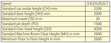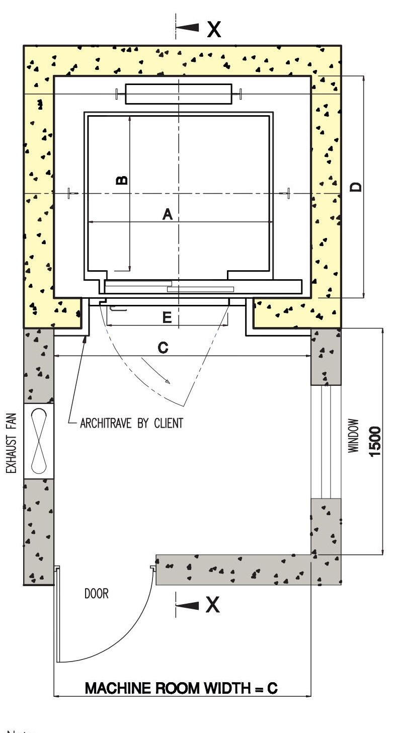 Dimensions in the machine room depend upon orientation and number of lift shafts.