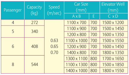 Rated capacity is calculated as 68kg per person, as required by the IS code.
